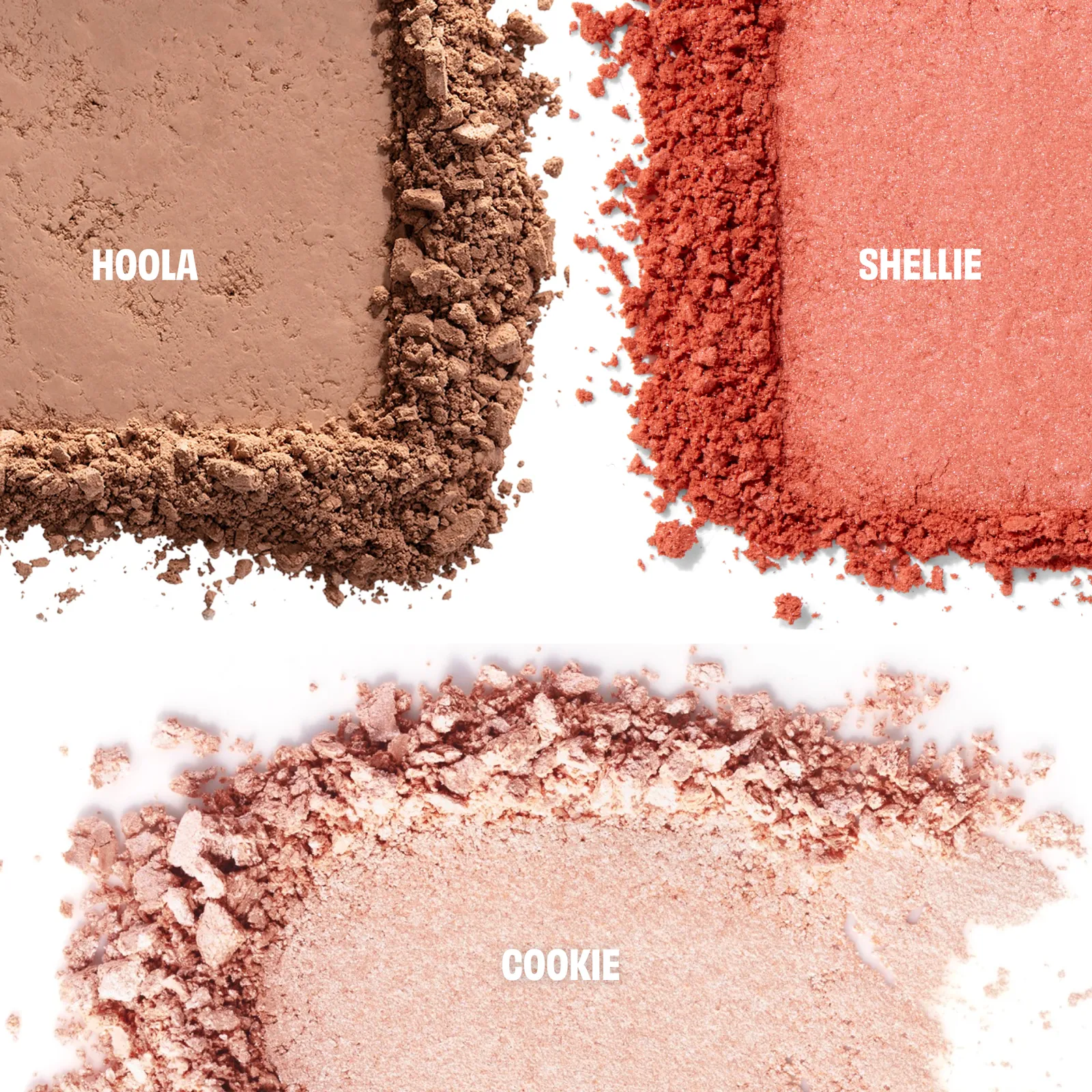 Glowing cheek champion? That’s you. The Game on Glow Palette brings together bronzer, blush, and highlighter for an effortlessly natural, sun-kissed finish. Start with Hoola Powder Bronzer for a warm, bronzed glow, add a pop of Shellie Blush for soft pink radiance, and finish with Cookie Highlighter for golden shimmer. Three winning moves, one flawless look.