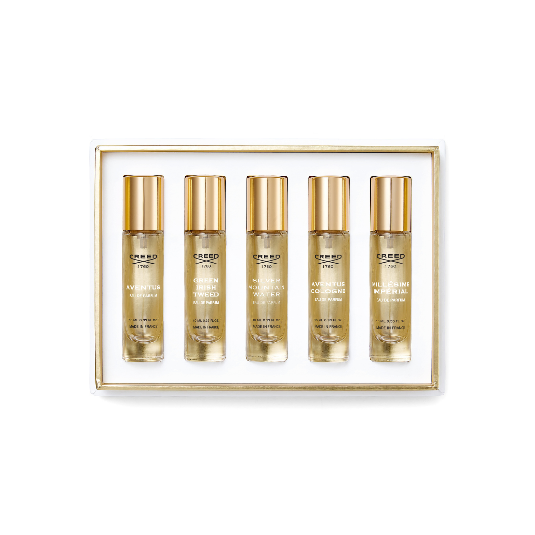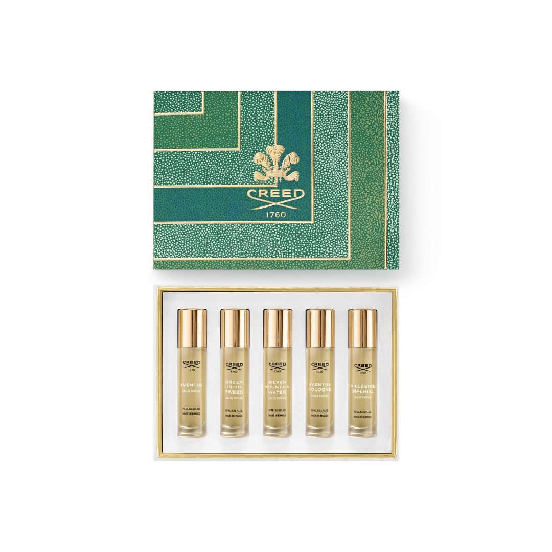 Celebrate the art of gifting with the Creed Men’s 5 Piece Holiday Set, presented in an iconic Creed gift box. This luxurious collection features five of the house’s most iconic masculine fragrances in 10ml Eau de Parfum vials, perfect for travel or as an indulgent gift.
