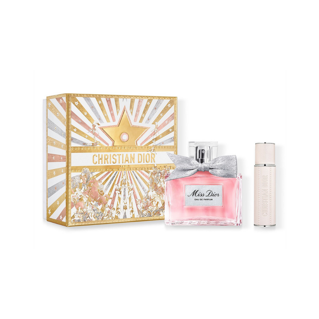Celebrate elegance and joy with the Miss Dior Gift Set, presented in a limited-edition case adorned with golden and pink motifs inspired by the circus world and its performers. This set combines Dior’s iconic fragrance with a convenient travel companion, perfect for gifting or taking Miss Dior wherever you go.
