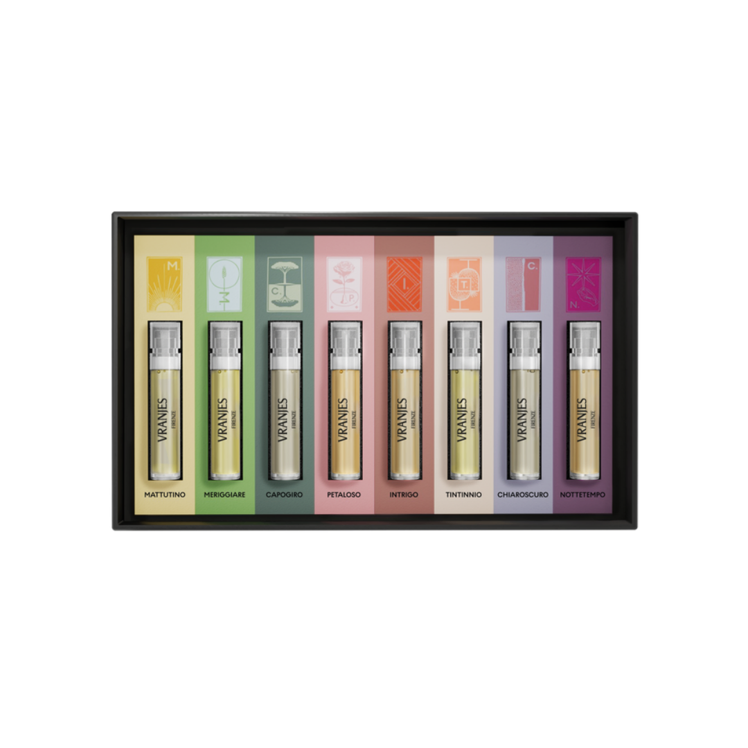 Inside this beautifully crafted box are eight unisex fragrances, each named after an Italian expression so rich in meaning it can’t be fully translated — only felt. Whether you’re dressing for morning freshness, a burst of midday inspiration, or the mystery of nightfall, this set lets you play with style and choose the fragrance that suits every moment of your day.