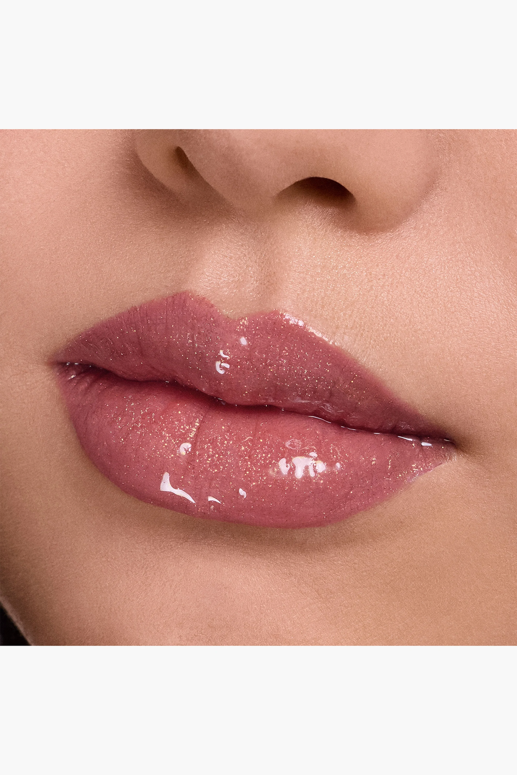 The colored end reveals a rich sequin finish that magically shimmers with a single press of the lips, while the gloss end enhances luminosity for spectacular shine.