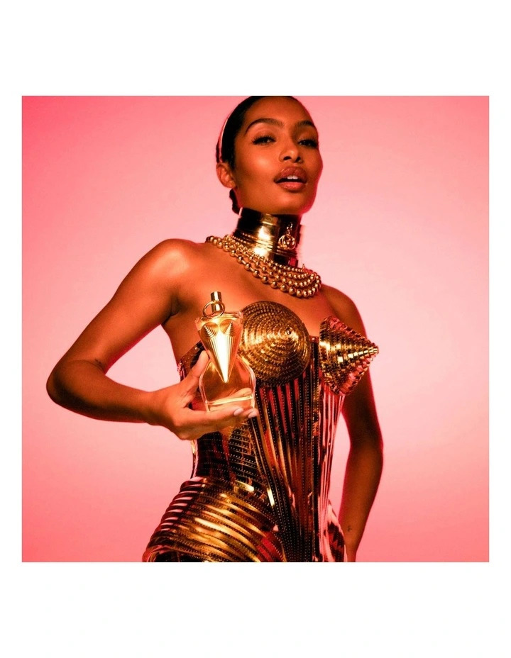Extraordinary just as she is. Divinely mysterious. Does she even exist? Beautiful and very real, she radiates natural power. Divine, like her Eau de Parfum. All voluptuous cones and curves. Free and dazzling down to her corset. Beneath the iconic pristine box, her salty gourmand floral magnetism dazzles with its boldness. Eternal thanks to the refillable 50 or 100 ml bottles! A genuine modern-day goddess!