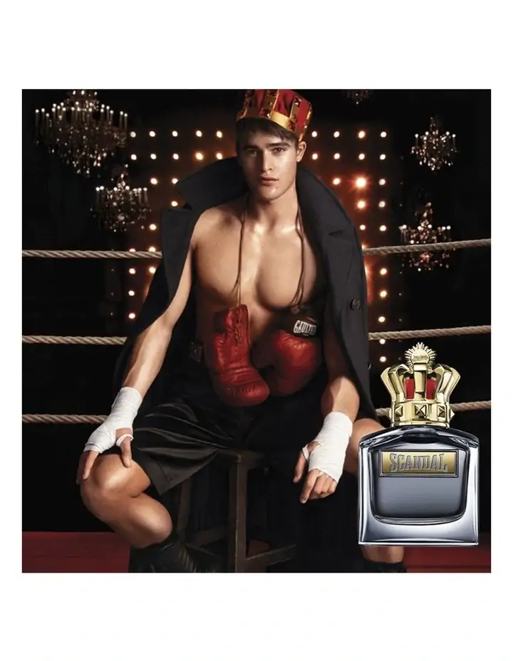 With muscled elegance and boxing gloves on, the new Scandal pour Homme by Jean Paul Gaultier hits hard with an energising and addictive Eau de Toilette. Crowned with victories, this king of the ring seduces his fans with virility contrasted by a sensual woody amber fragrance in a knockout refillable bottle. Let the show begin!