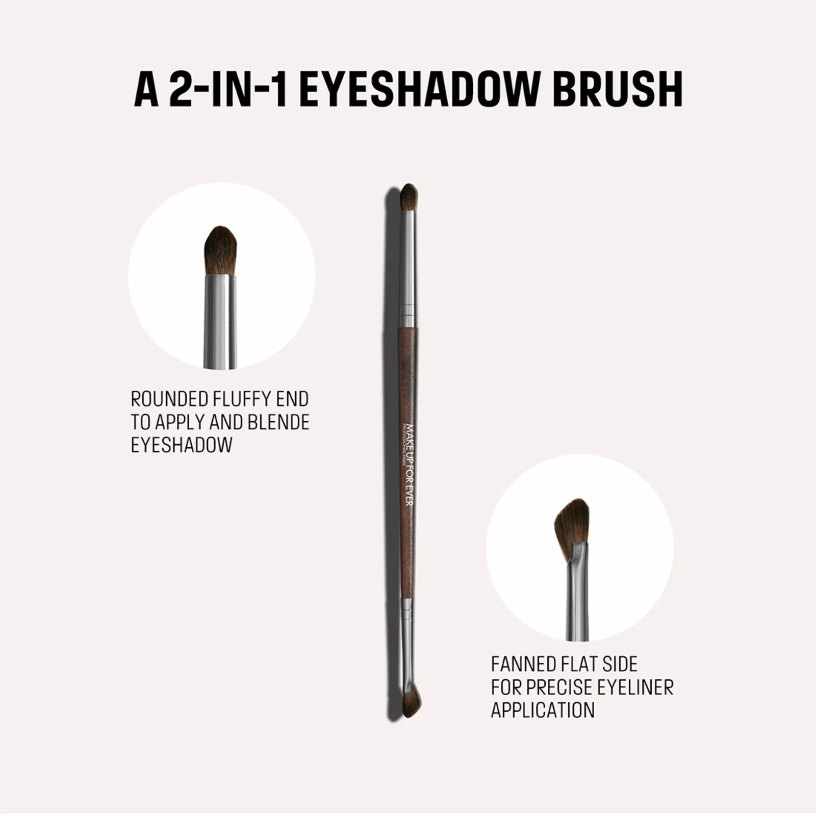 Master every eye look with the MAKE UP FOR EVER #262 Versatile Dual Ended Eye Brush. Designed for ultimate precision and blendability, this pro-level tool features two ends: one side with a soft, fluffy brush for seamless blending, and the other with a flat fan shape for detailed application. Whether you’re creating a soft smoky look or a sharp, defined liner, this brush offers complete control and flawless results.