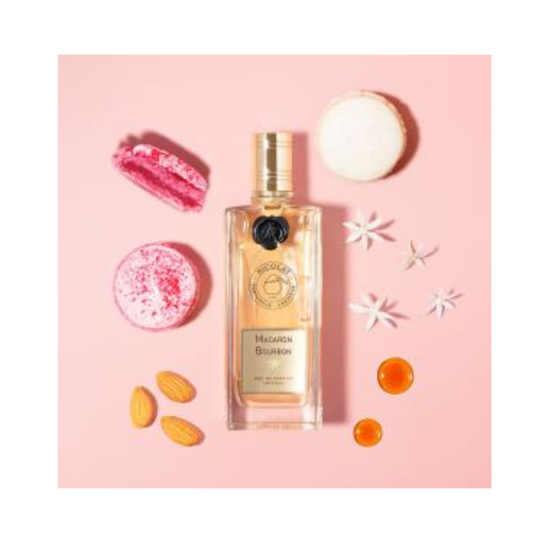 "Macaron Bourbon is the fruit of my love for French pâtisserie. The combination of almond, rum, and caramel recalls the scents of a kitchen alive with warmth and creativity."