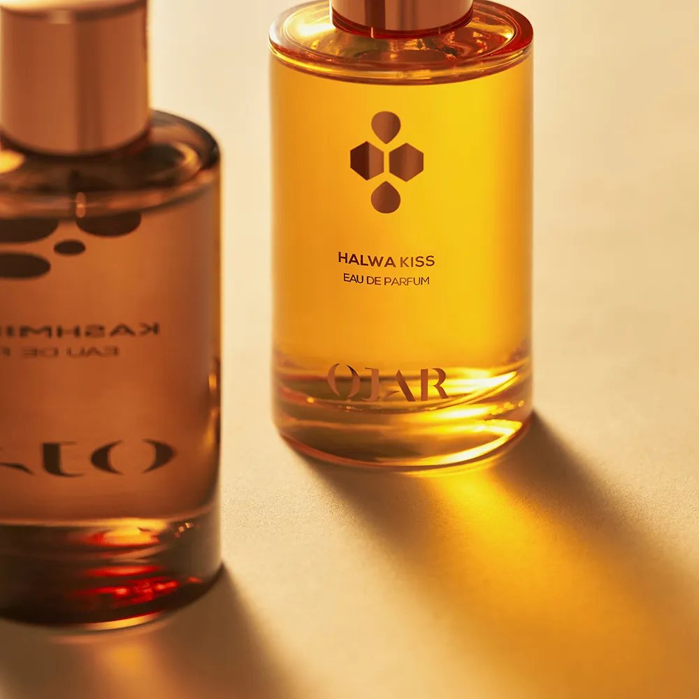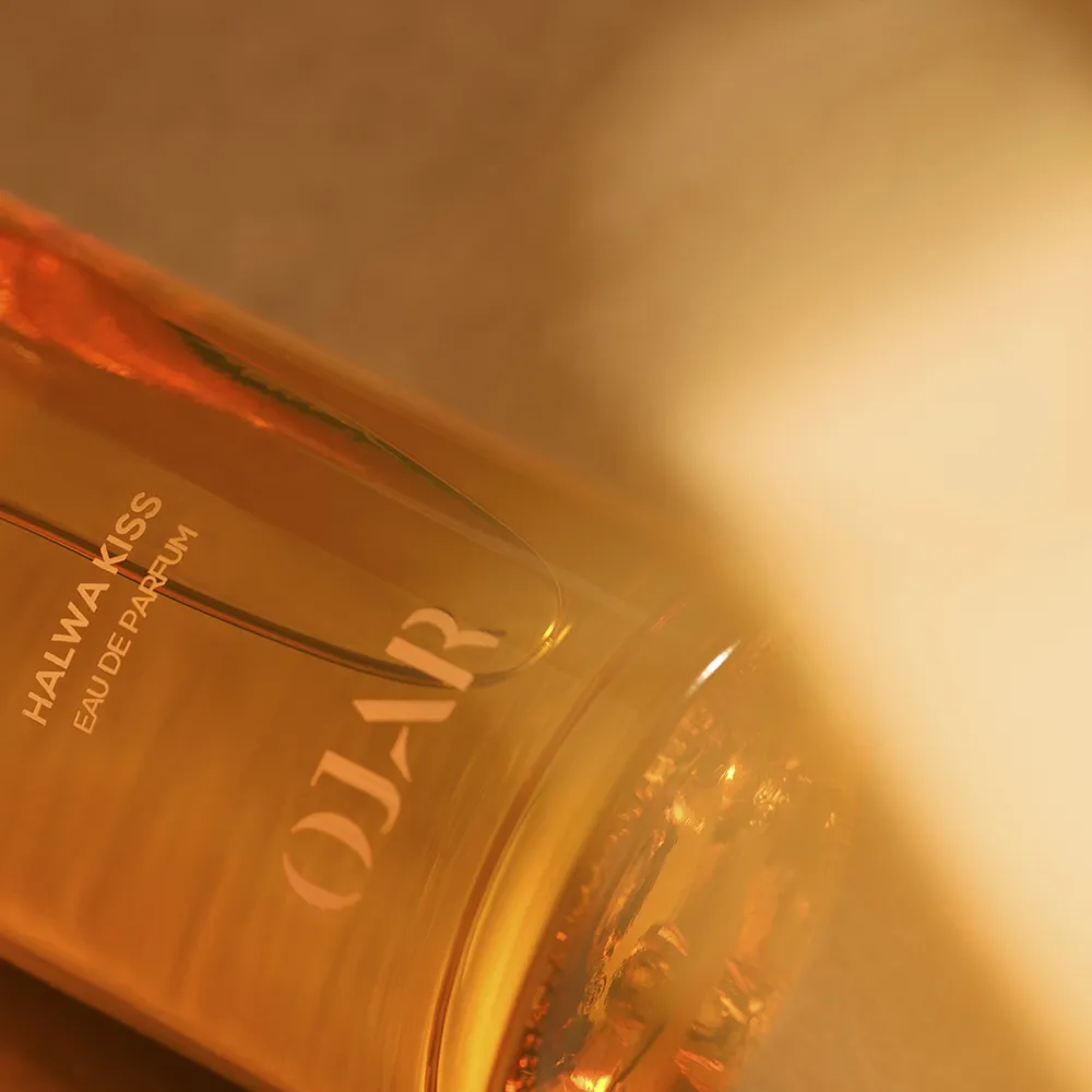 Inspired by the famous Omani delicacy, Halwa Kiss Eau de Parfum is an opulent and generous fragrance - a symphony of flavors and aromas that evoke the joyous atmosphere of festive gatherings and cherished moments shared with loved ones. The subtle sweetness of Dates and Honey notes is balanced with the delicate beauty of Rose, the richness of Vanilla, the spiciness of Cardamom and Saffron, and a savory explosion of Pistachio and nut accords. Every spritz envelops you in a warm embrace, filling the air with its irresistible sweetness.