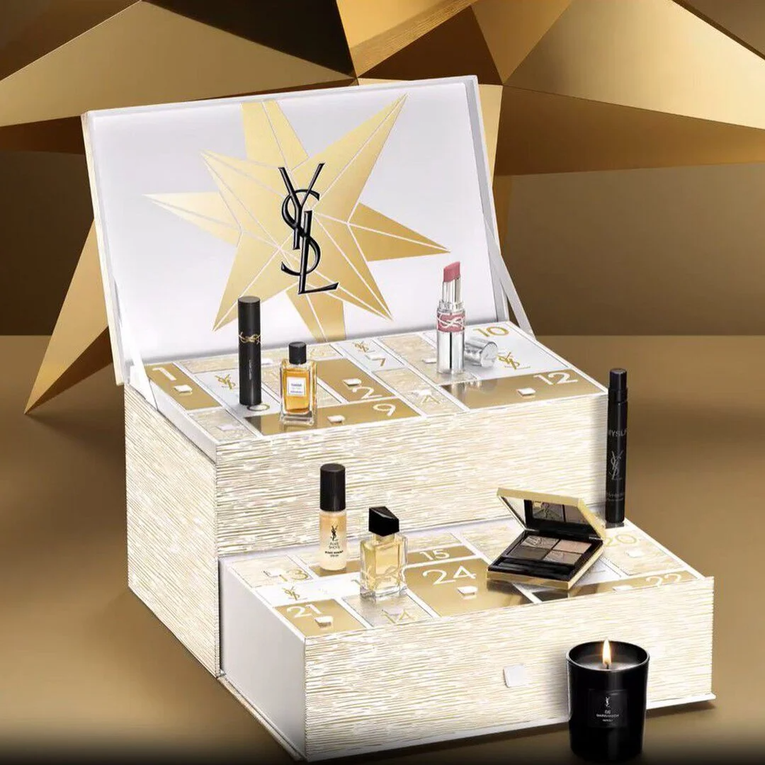 Celebrate the season in true couture style with the YSL Holiday Advent Calendar. Brushed in gold and topped with an oversized Cassandre, this jewelry-box-inspired calendar reveals a curated collection of YSL’s most iconic products. Perfect for gifting or indulging, it brings glamour and joy to every day of the holiday season.